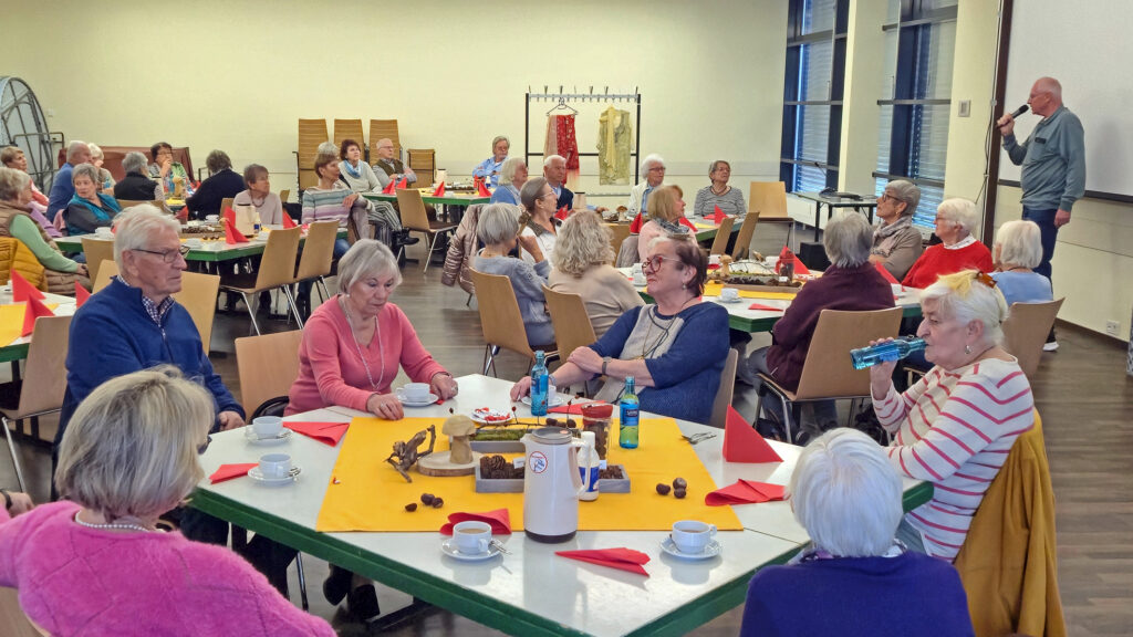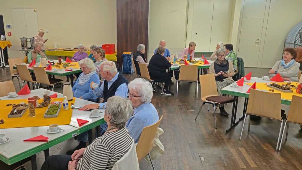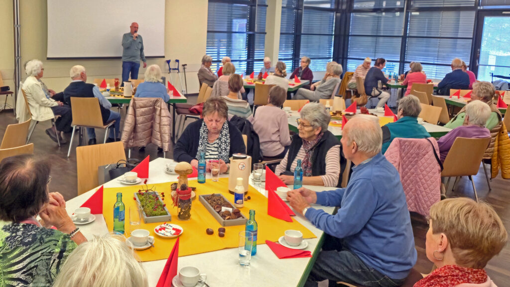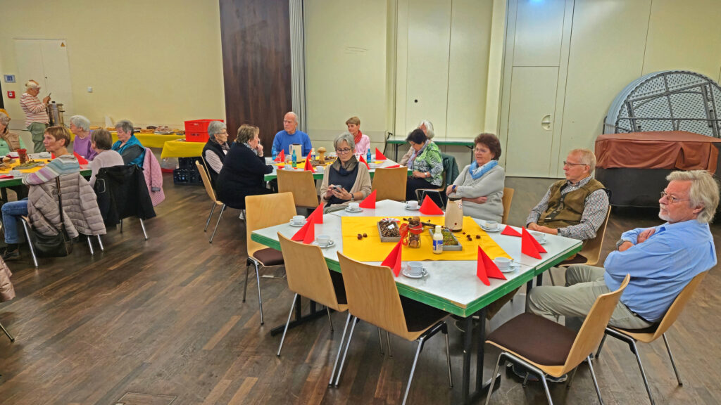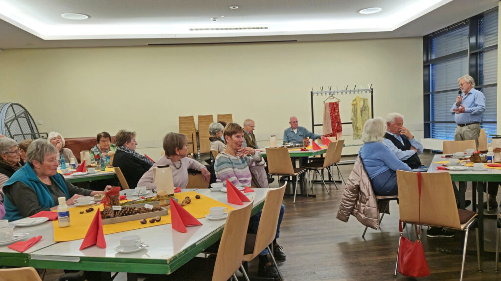Bei Kaffee und Kuchen, an liebevoll und herbstlich dekorierten Tischen, nutzten die Teilnehmenden die angenehme Atmosphäre, um miteinander ins Gespräch zu kommen. Im Mittelpunkt stand der bildreiche Reisebericht von Herrn Lotz und seiner Frau, die vor einigen Jahren den nordwestlichen Teil Indiens bereisten. Ihr sorgfältig zusammengestellter und eindrucksvoll präsentierter Film nahm das Publikum mit auf eine faszinierende Reise durch eine Region, die vielen noch unbekannt ist.