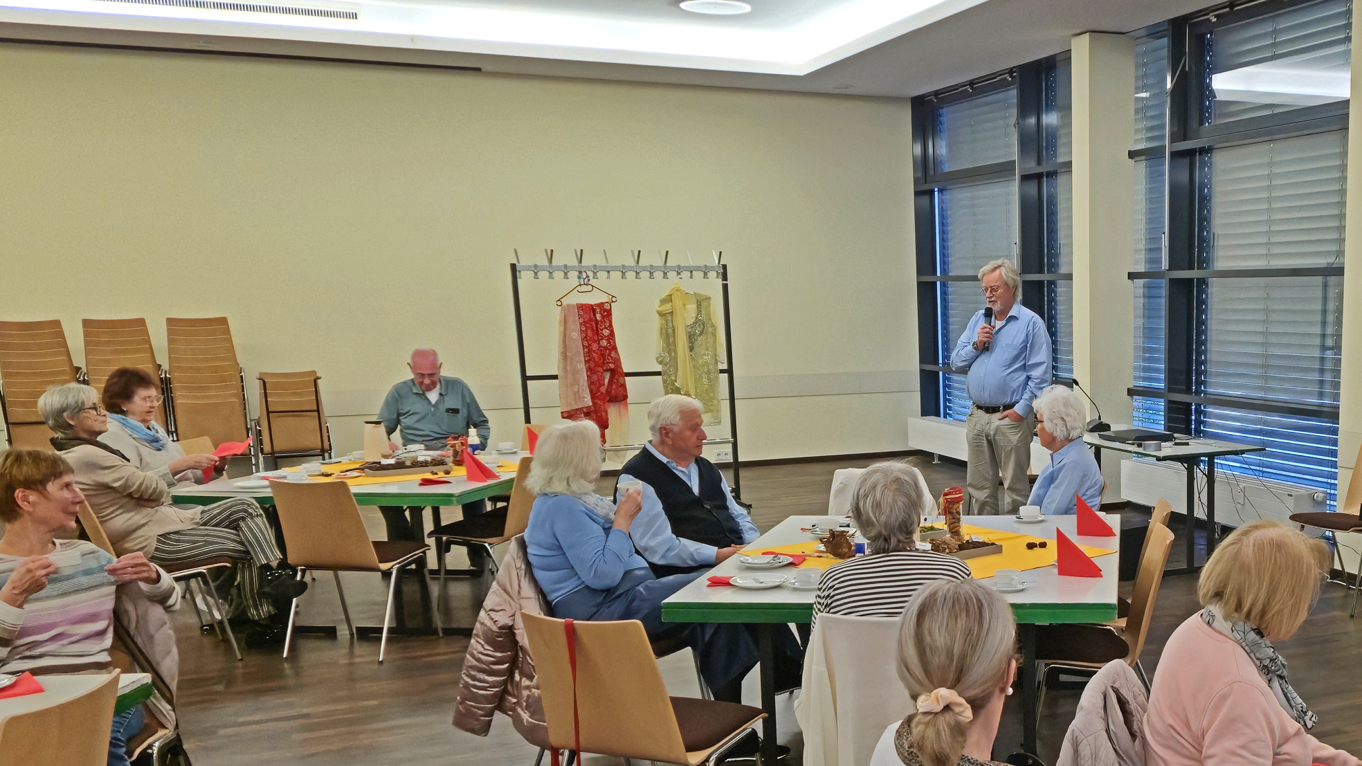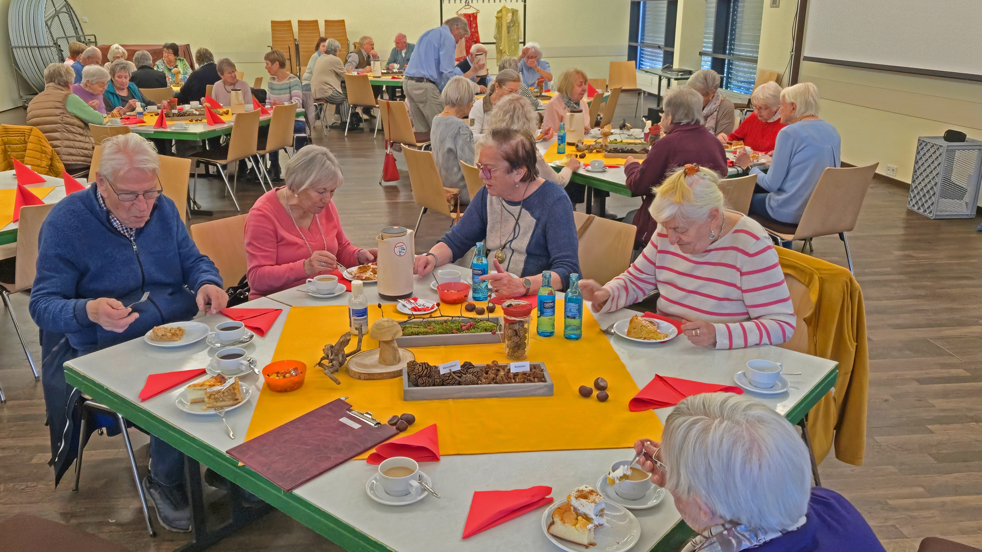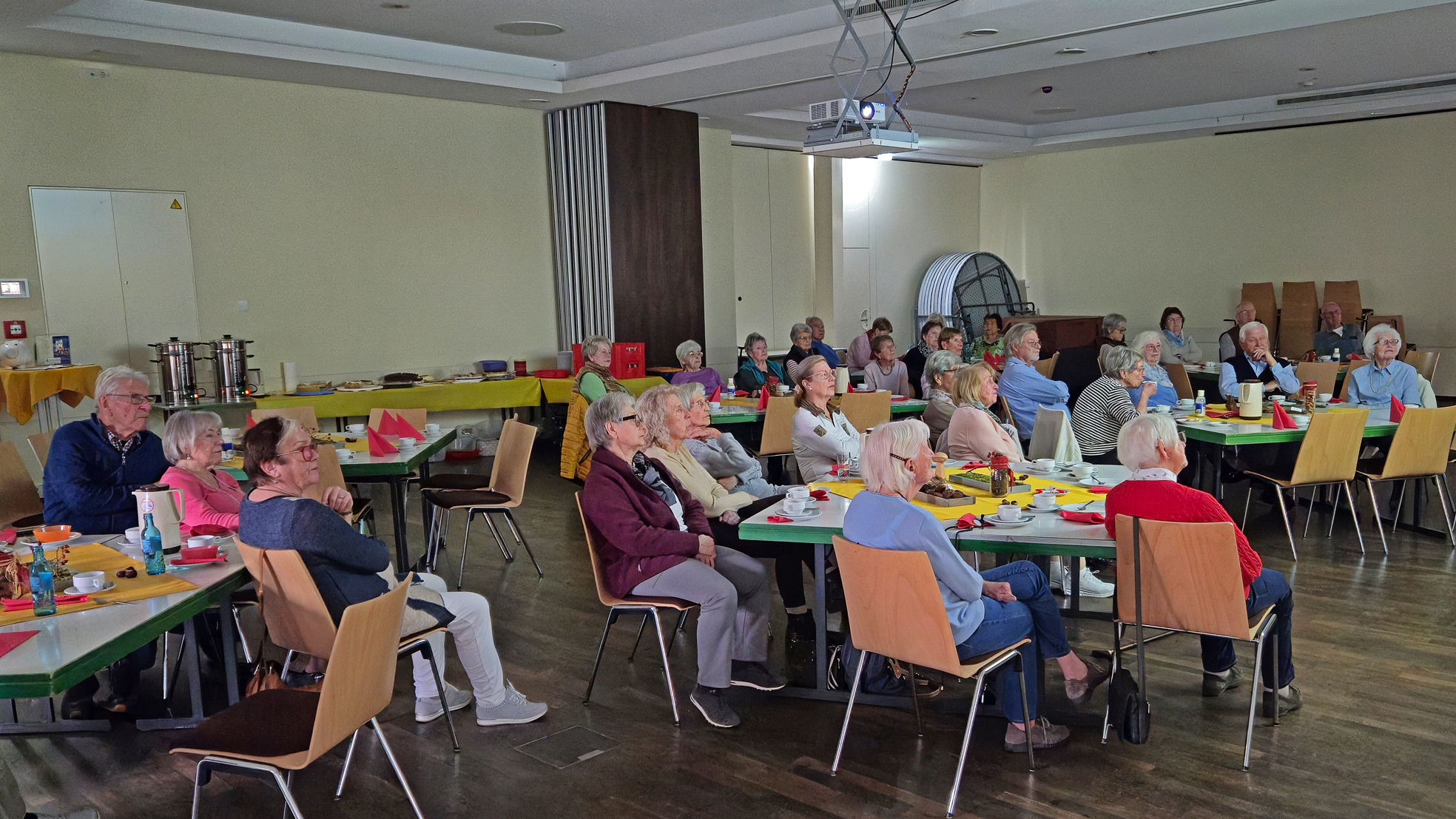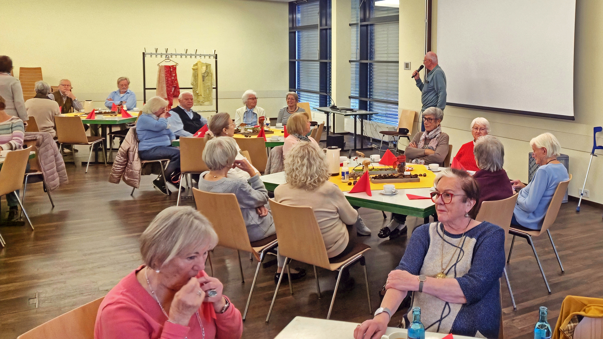 Bei Kaffee und Kuchen, an liebevoll und herbstlich dekorierten Tischen, nutzten die Teilnehmenden die angenehme Atmosphäre, um miteinander ins Gespräch zu kommen. Im Mittelpunkt stand der bildreiche Reisebericht von Herrn Lotz und seiner Frau, die vor einigen Jahren den nordwestlichen Teil Indiens bereisten. Ihr sorgfältig zusammengestellter und eindrucksvoll präsentierter Film nahm das Publikum mit auf eine faszinierende Reise durch eine Region, die vielen noch unbekannt ist.